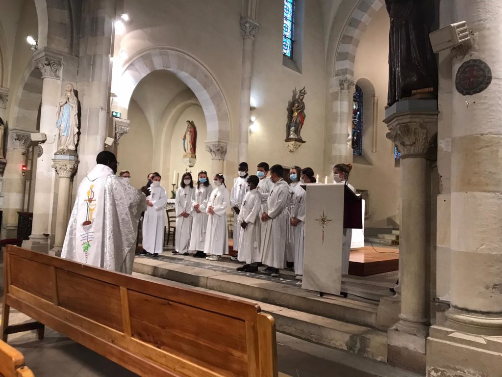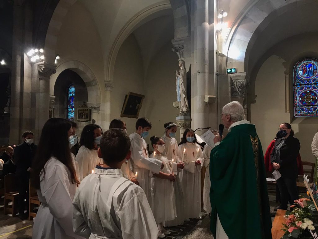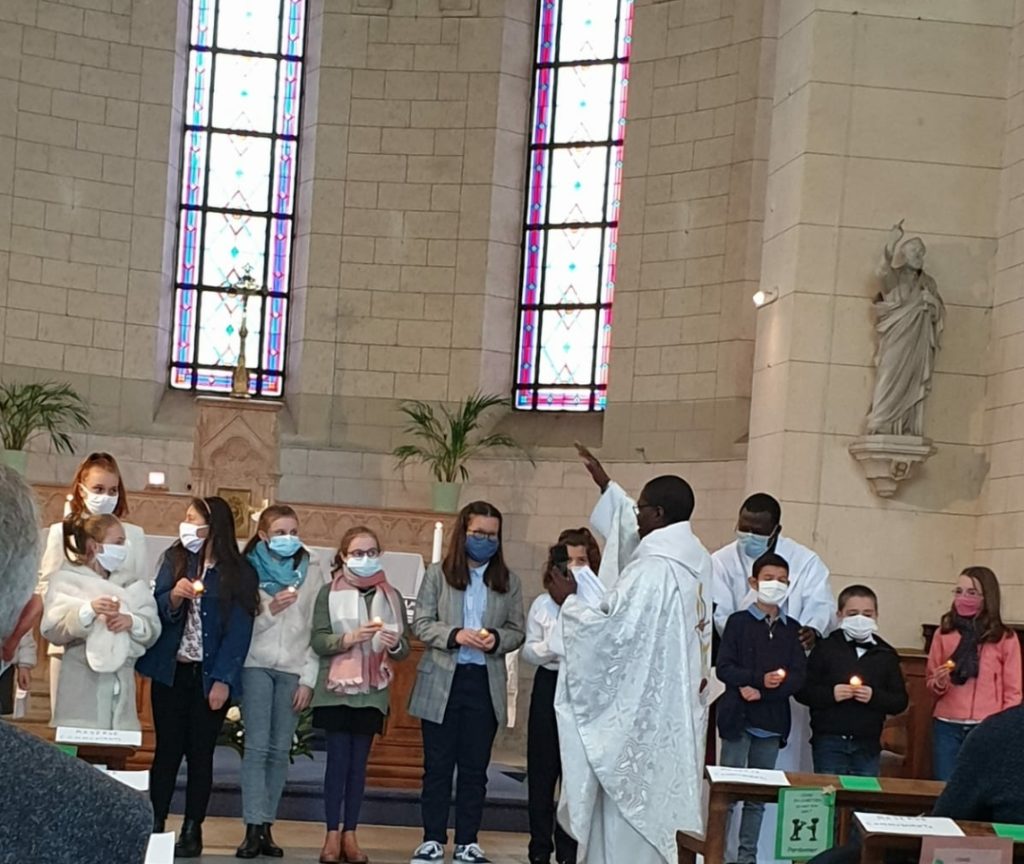 Ainsi, la célébration des 1ères communions rassembla les jeunes et leurs familles à l’église Notre-Dame de l’Orme à Vauzelles. Les samedi 10 et dimanche 11 octobre, c’est l’église Saint-Louis à Fourchambault qui a accueilli tous ces jeunes venus professer leur foi. Dans un contexte sanitaire contraignant, le port du masque en particulier n’a finalement pas altérer la joie des jeunes et leurs familles. Quelle joie pour notre paroisse Saint Jean-Paul 2 de vivre ces fêtes de la foi avec ces jeunes. Il est important de les accompagner dans leur parcours de foi. Nous profitons ainsi de l’occasion pour adresser un grand merci aux responsables de catéchèse et d’aumônerie pour leur investissement auprès des jeunes.