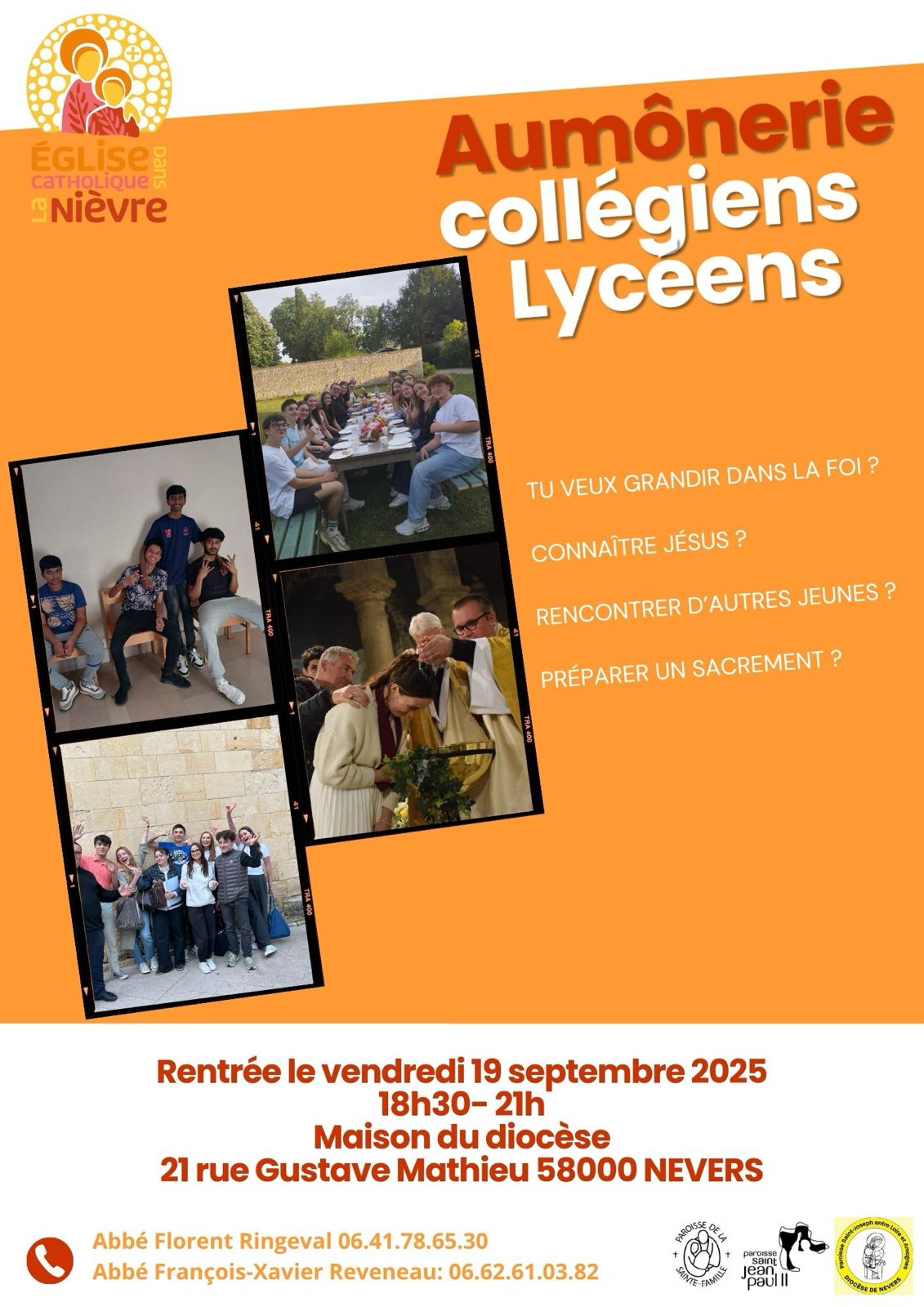 Être collégien ou lycéen est une étape importante de la vie où chaque jeune traverse une période particulière, parfois difficile. Certains ont déjà entamé depuis des années un chemin de foi avec de la catéchèse depuis la primaire. D'autres n'en ont jamais fait. L'aumônerie est le lieu parfait pour permettre à tous de mieux découvrir Jésus tout en apprenant plus sur soi-même ! Grandir dans la foi, c'est évidemment grandir dans la vie. Et nos rencontres permettent ainsi aux jeunes de grandir au sein d'une fraternité.