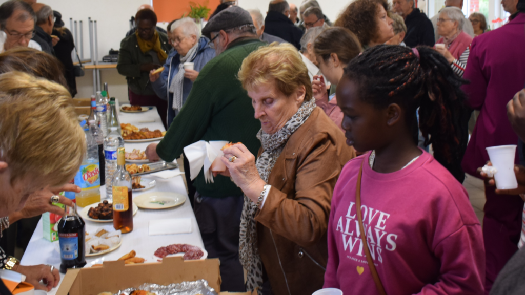 A l’issue de la messe, la météo n’a pas découragé les volontés de bon nombre de personnes. Ainsi, la salle paroissiale s’est vue accueillir en ses murs une très grande partie de l’assemblée, qui en ces temps de rentrée, ont pu partager nouvelles et invitations diverses à la vie de notre paroisse.