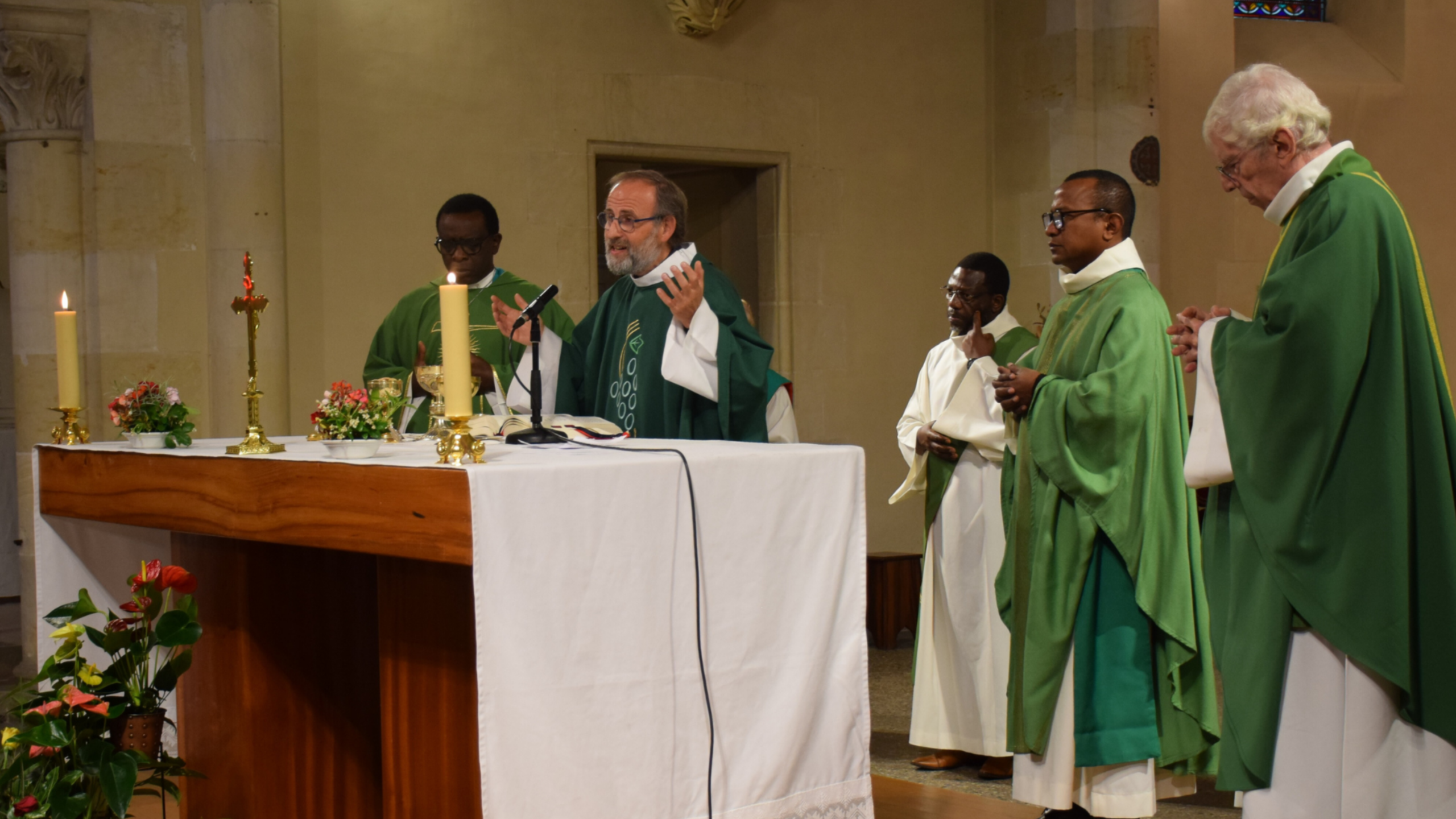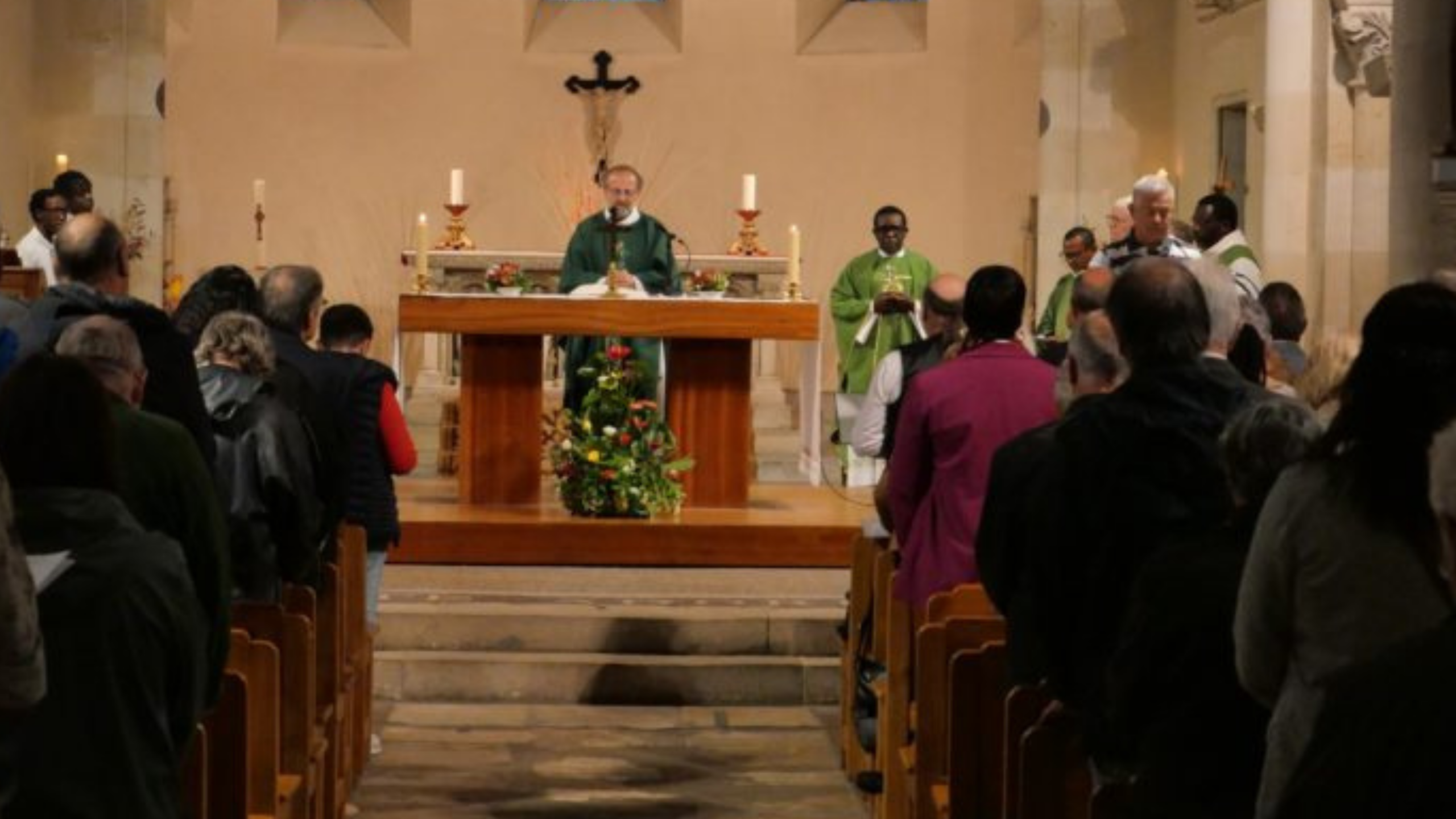 “Le prêtre que vous recevez aujourd’hui pour qu’il soit votre curé, a reçu la charge de veiller sur vous et sur tous ceux qui vivent sur le territoire que représente la paroisse Saint Jean Paul [..] Le père Évariste vous accompagne de son attention paternelle au nom du Seigneur Jésus pour que vous puissiez accomplir pleinement votre mission dans le monde : témoigner de la miséricorde de Dieu, de son attention aux plus petits, de son désir d’être présent dans le coeur de tout homme. Avec lui, au nom du Seigneur vous devez être témoins de la Bonne Nouvelle du Sauveur que le monde attend, alors qu’il attend la paix, la justice, le bonheur.” nous dit le père François-Xavier Reveneau dans son homélie, que vous pouvez retrouver ici