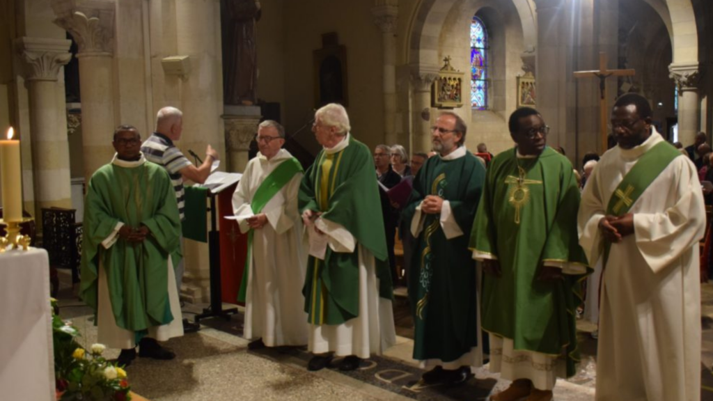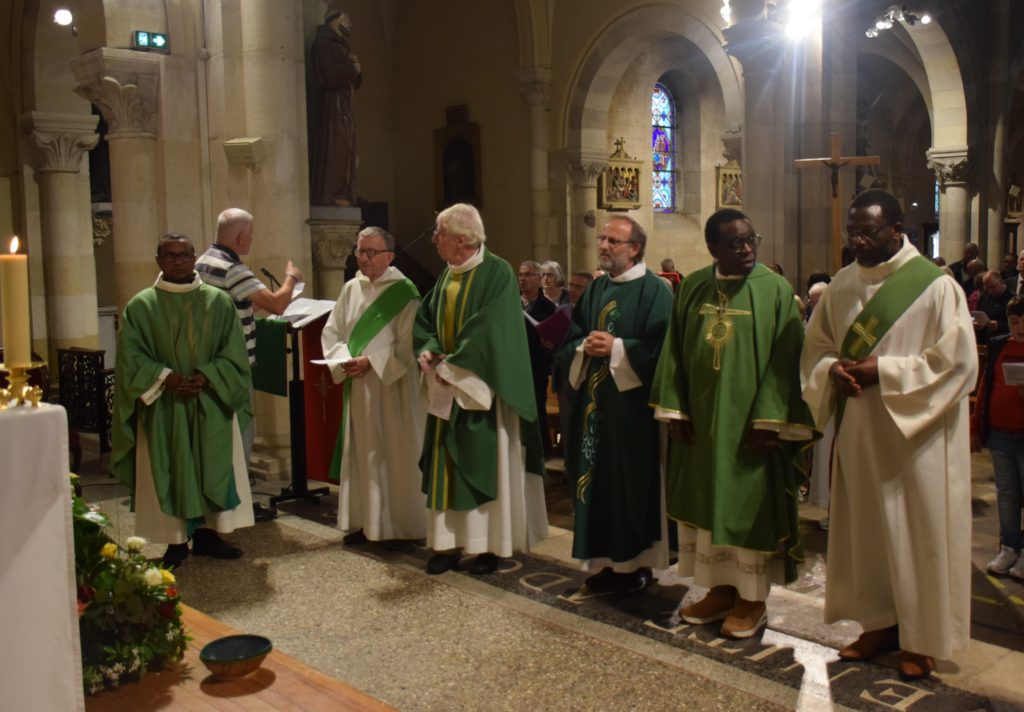 Dans une messe présidée par le père François-Xavier Reveneau, vicaire général, toute la communauté est venue des différents horizons de notre paroisse. Animée par la chorale paroissiale, cette messe nous a vu prier pour ces 2 prêtres appelés par le Seigneur à nous conduire sur le chemin de la foi. L’assemblée, s’est réjouie également de la présence des enfants de la catéchèse heureux de se retrouver sur les bancs, premiers “spectateurs” de cette messe d’installation.