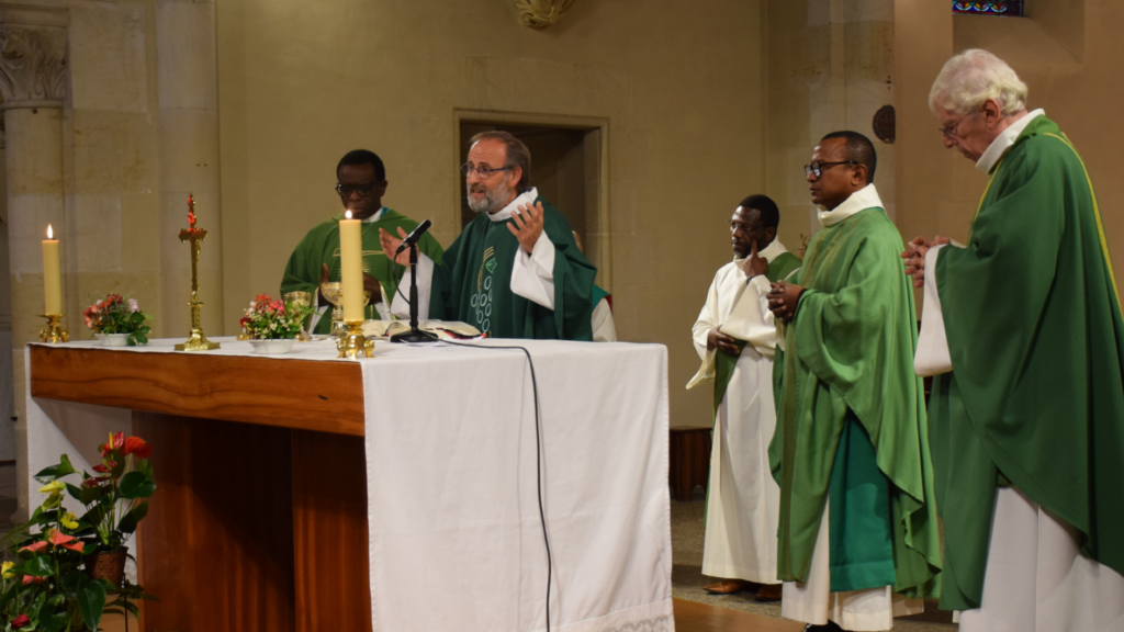 Ce dimanche 21 septembre 2025 était pour notre paroisse un dimanche peu ordinaire. Notre communauté avait à coeur d’entourer les pères Évariste Hitayezu et Guy Edmond Randrianantenaina, respectivement nommés curé et vicaire de notre paroisse.